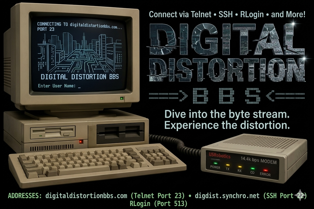 Aside from this web site, the text interface for this BBS is available via Telnet, SSH, RLogin.