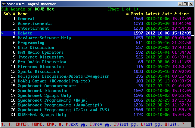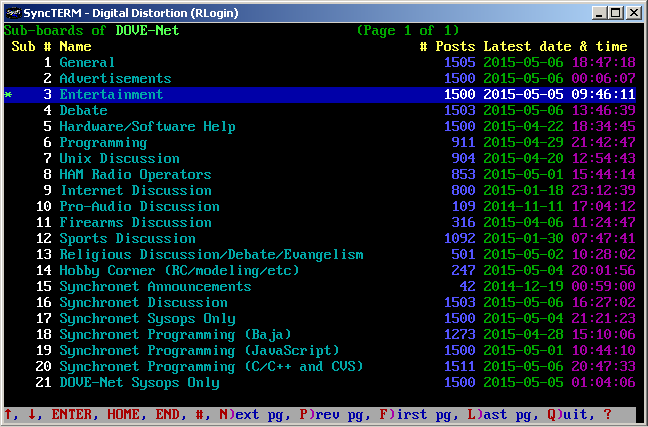 messages in the sub-board, and changing to a different sub-board. Text search is supported