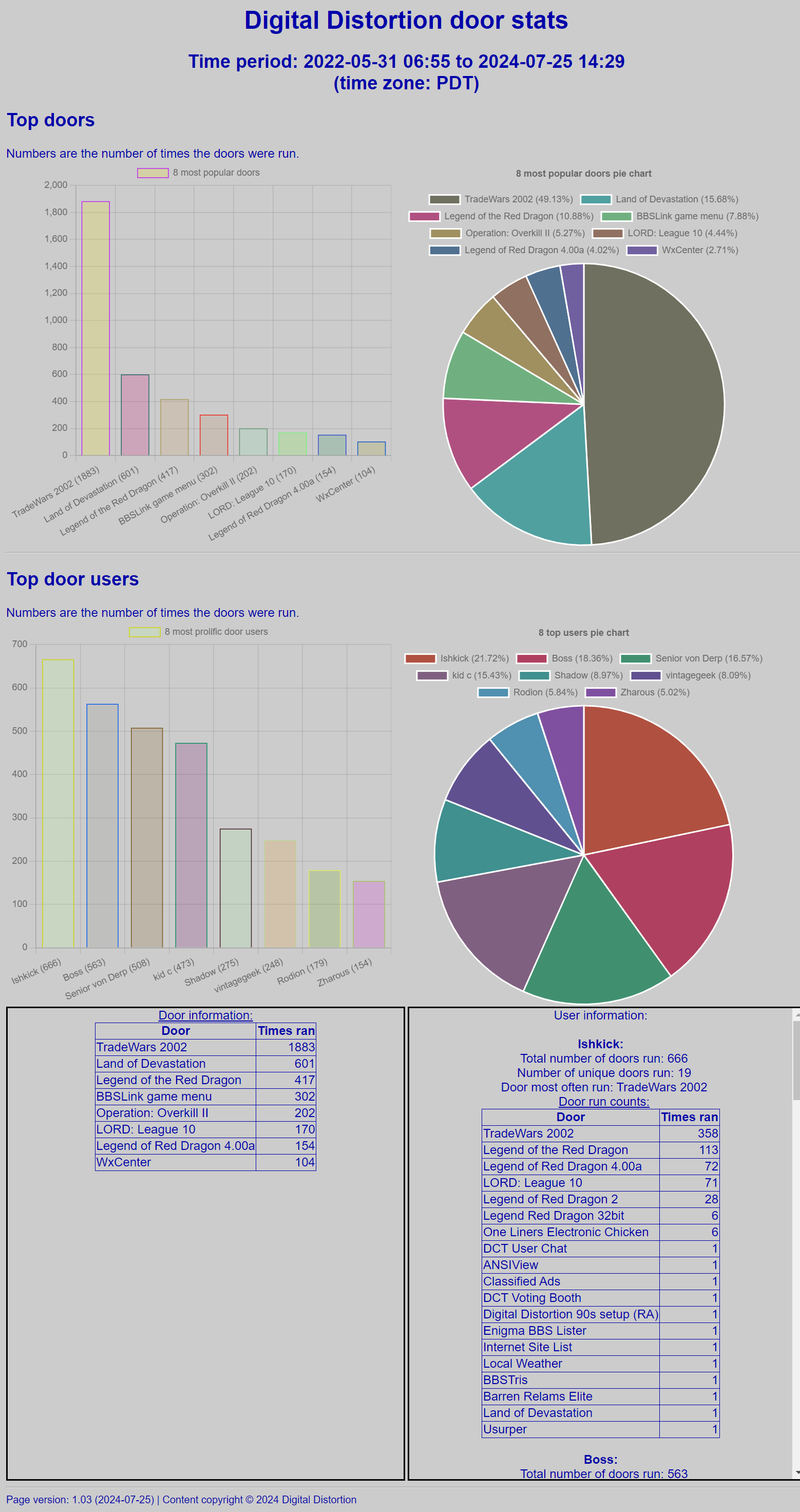 This is a web page for Synchronet's web server that displays door usage stats