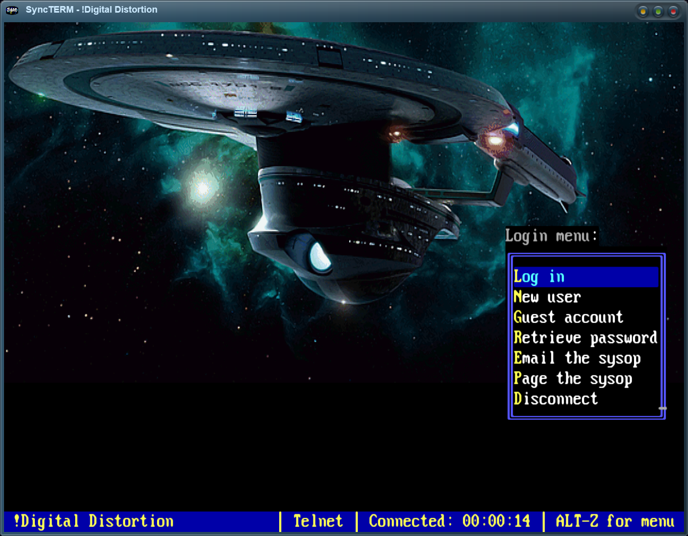 sysop, Page the sysop, and Disconnect.