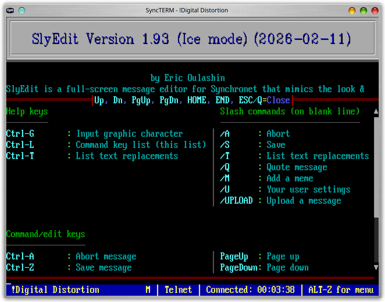As of Synchronet 3.16, SlyEdit is included with Synchronet. The SlyEdit files